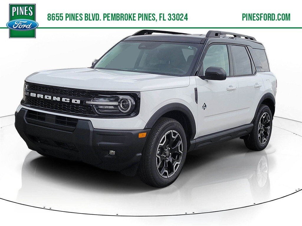 Pines Ford / Lincoln is pleased to offer this Beautiful 2025 Ford Bronco Sport. This Outer Banks Bronco Sport is beautifully finished in Oxford White and complimented by Platinum Blue Cloth and this exceptional vehicle comes well equipped with and gives you an amazing driving experience along with impressive Fuel efficiency rating.