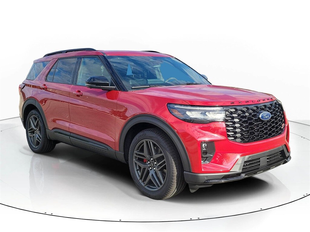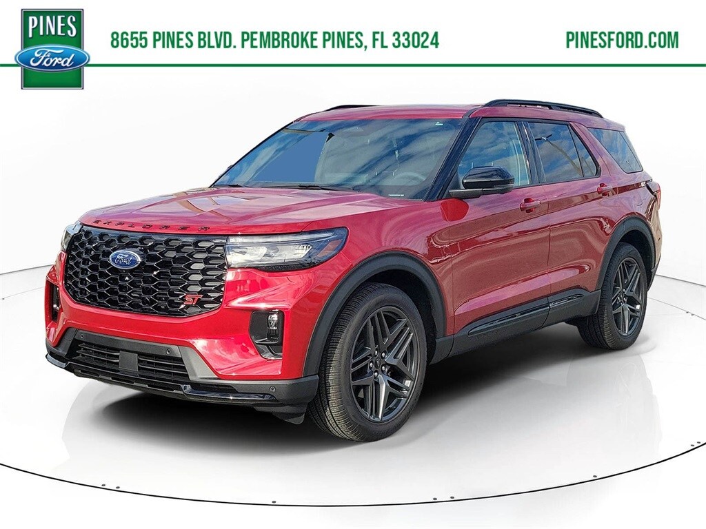 Pines Ford / Lincoln is pleased to offer this Beautiful 2026 Ford Explorer. This ST Explorer is beautifully finished in Rapid Red Metallic Tinted Clearcoat and complimented by Onyx Leather and this exceptional vehicle comes well equipped with and gives you an amazing driving experience along with impressive Fuel efficiency rating.
